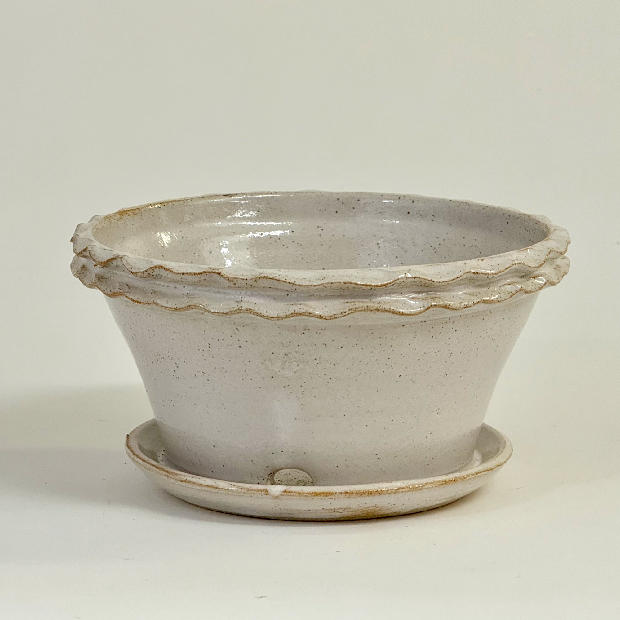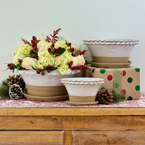 Double Rim Galena Paperwhite Pot with Attached Saucer