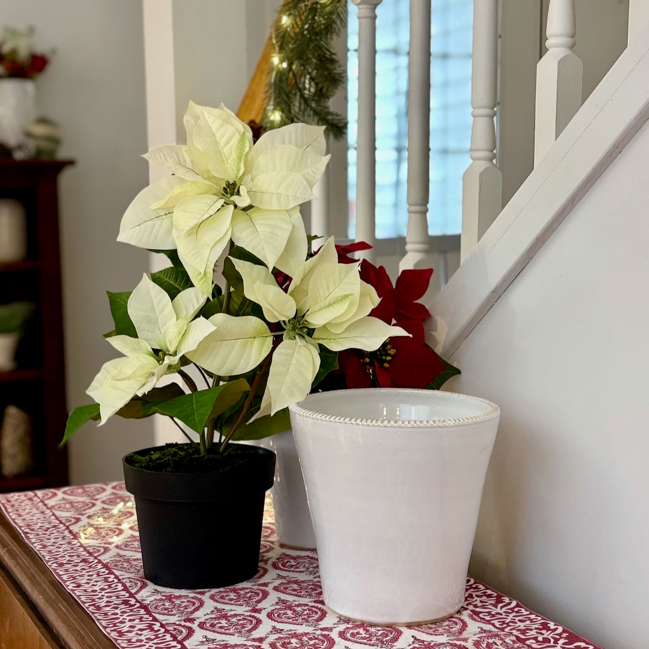This poinsettia cachepot — sometimes called a sleeve — is crafted without a drain hole so your holiday plant can slip right in.
