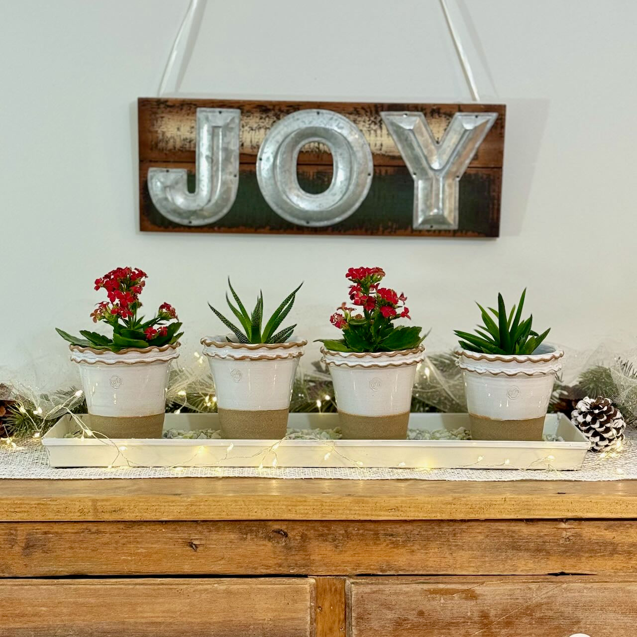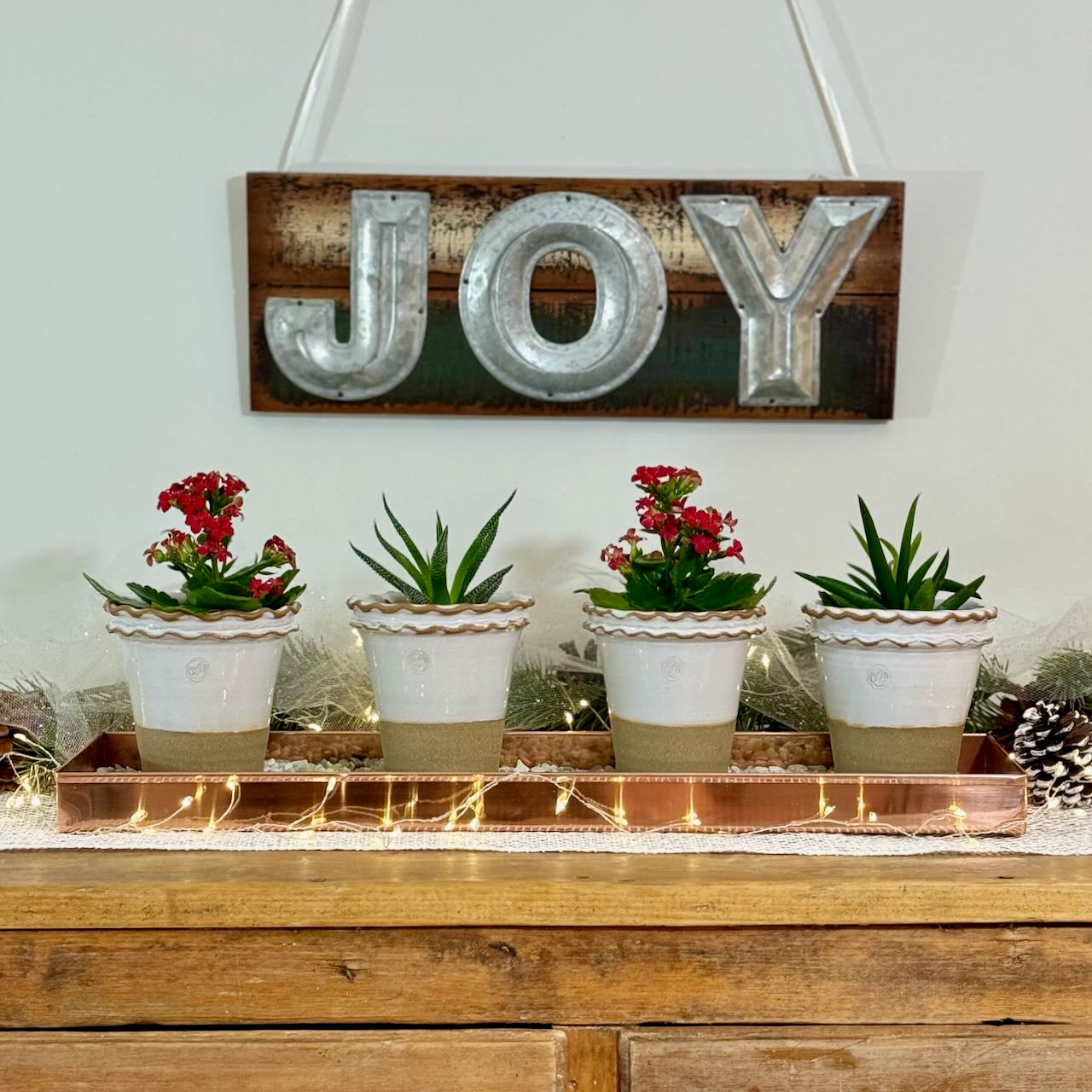 Inspired by 19th-century pottery from Galena, Illinois, this set of four hand-thrown herb pots is made from iron-bearing clay that fires to a warm gingerbread hue. Choose a galvanized tray, a copper-plated tray, or the pots on their own — each piece handmade one at a time in our Wisconsin studio.