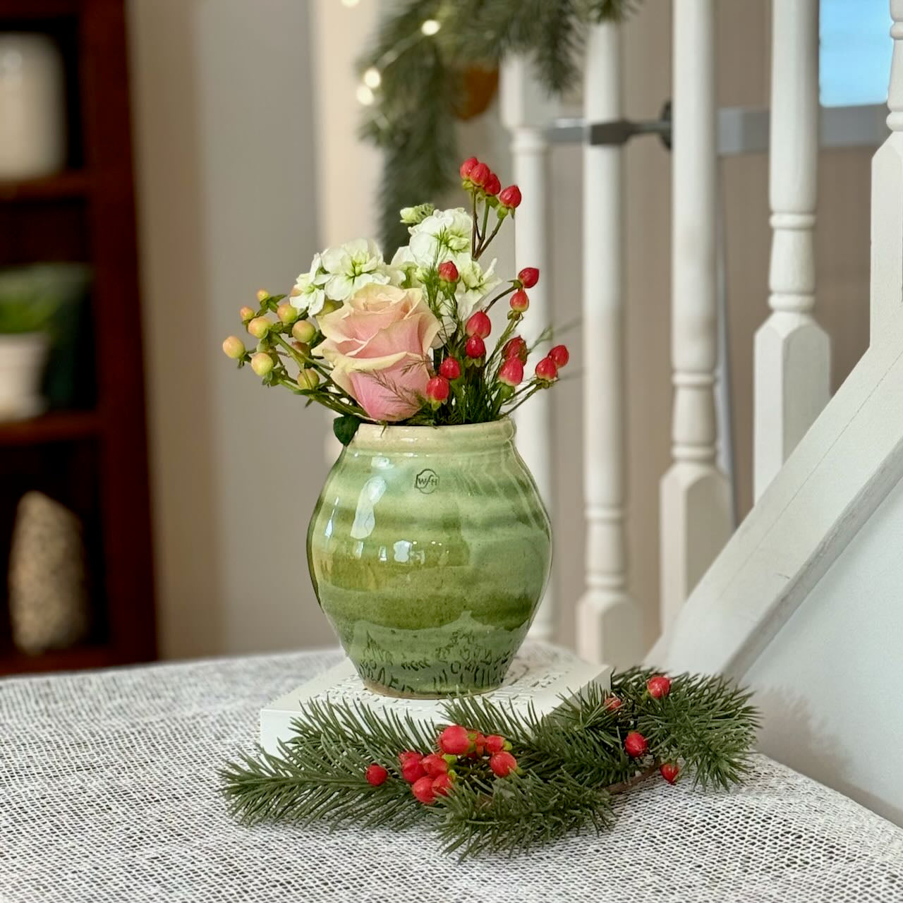 The idea of making a miniature moon jar for our Holiday Preorder came almost by chance, but the form has both the beauty and function I value. Made from Verdigris Marbled Clay, each one carries its own rhythm and depth — no two are alike. They can serve as small vases or stand on their own as sculptural pieces.