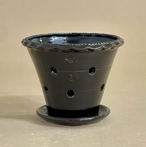 Glazed Ornamented Rim Orchid Pot with Attached Saucer