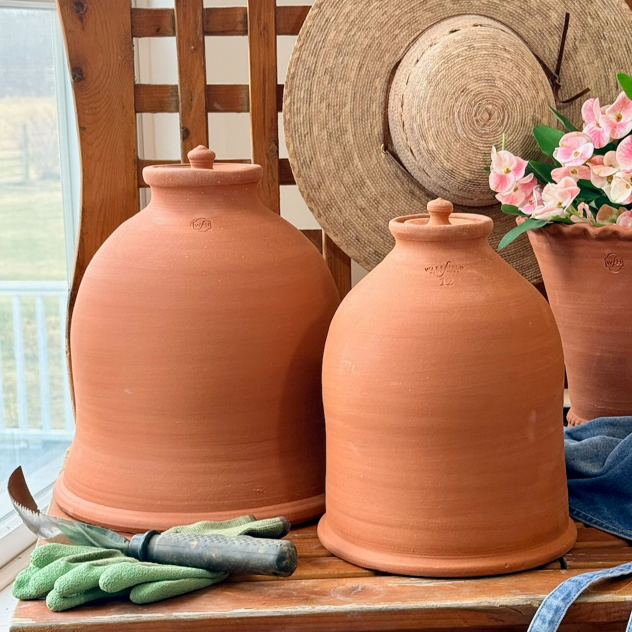 Each sea kale forcer is hand-thrown in traditional terracotta and designed to function just as these garden tools have for generations. The removable lid allows gardeners to check growth or harvest shoots without removing the entire pot.
